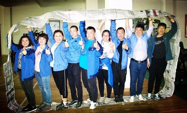 每個隊用提供的材料將報紙圍成一個可以行進的履帶式的環(huán),要求本組所有成員在規(guī)則要求下走完規(guī)定的路程,以最快到達終點的組為優(yōu)勝。